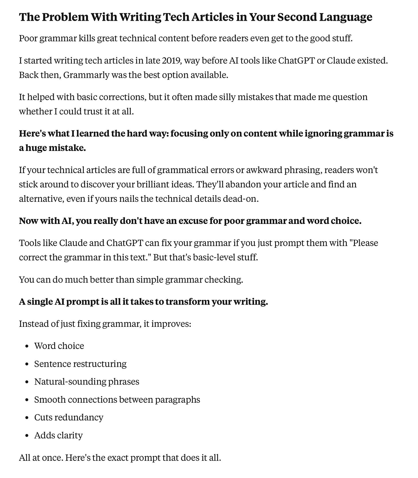 This article reveals the exact prompt and explains why it's a must-have for technical writers, complete with real before-and-after examples.